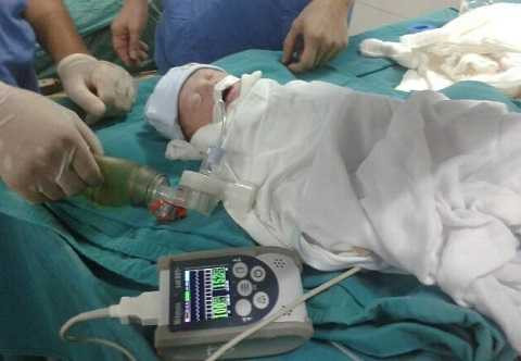 Bác sỹ tham gia ca mổ chia sẻ: Chúng tôi tranh thủ từng phút, khi lấy được cháu bé ra thì nhịp tim rời rạc, người cháu nhẽo, không khóc, phải hà hơi thổi ngạt, lau sạch màng nhày, đặt ống nội khí quản, bóp bóng hồi sức.