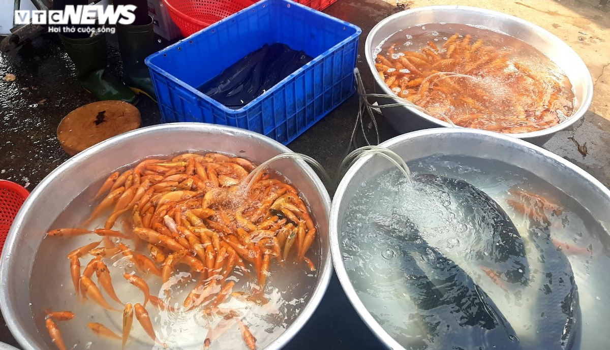 Nhiều hộ kinh doanh còn đựng sẵn 3 con chép vào mỗi túi để tiện bán cho khách. Một túi 3 con cá có giá 50.000 đồng, cá lớn bằng bàn tay trở lên có giá từ 50-150.000 đồng/con tùy loại.