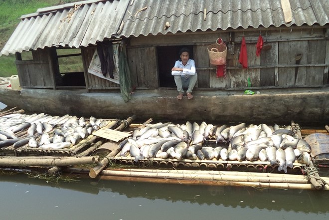 | Nước sông Bưởi ô nhiễm khiến cá nuôi lồng chết hàng loạt trên sông Bưởi. Ảnh: Nguyễn Dương. |