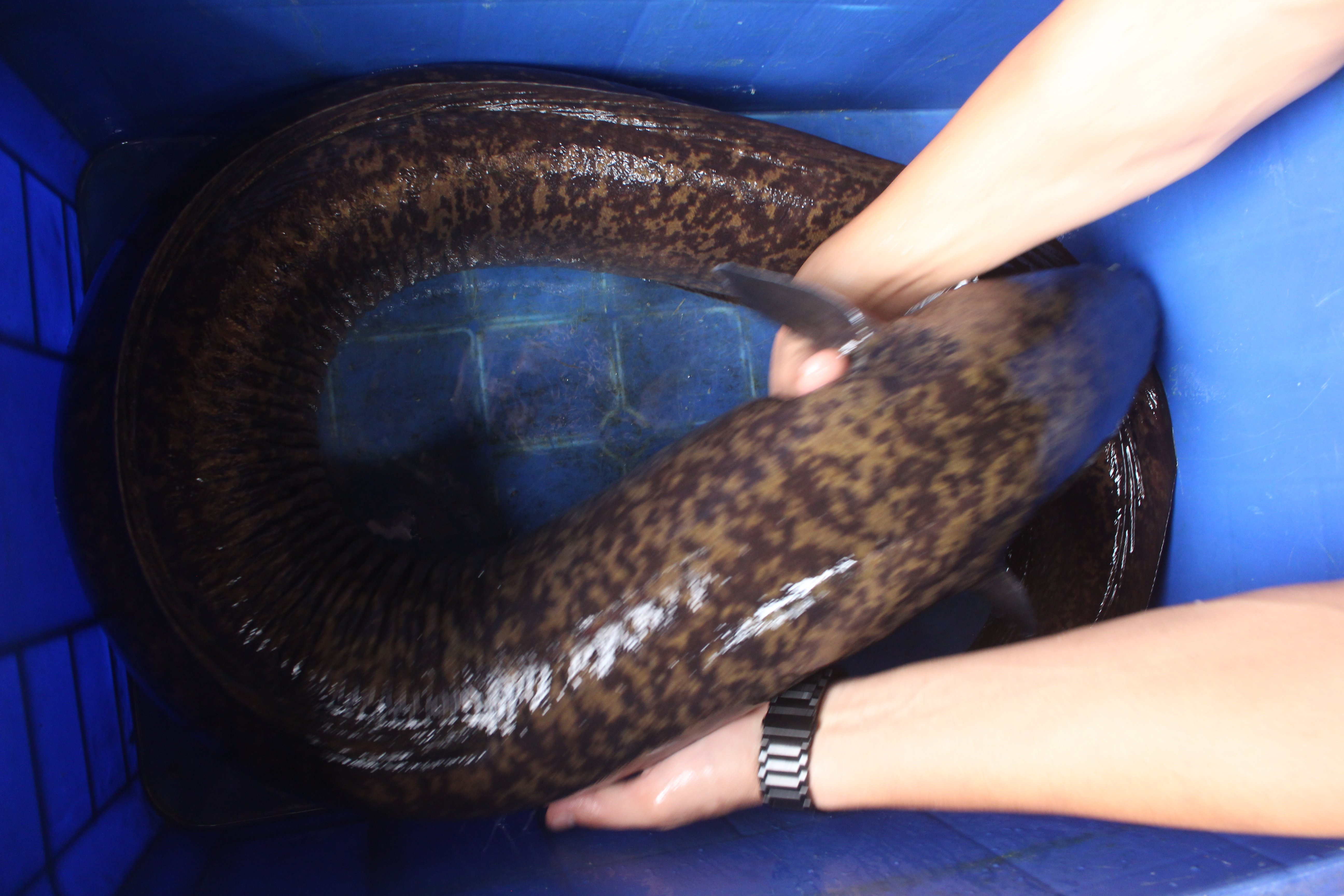 Ngày 22/8, anh Nguyễn Hồng Thái, chủ nhà hàng Ngư Quán (Cầu Giấy, Hà Nội) cho biết, cá chình anh mua của ngư dân Nghệ An nặng 15 kg, dài hơn 1 m. Cá được vận chuyển bằng ô tô có sủi chuyên nghiệp, đảm bảo vẫn còn tươi sống khi về Hà Nội.