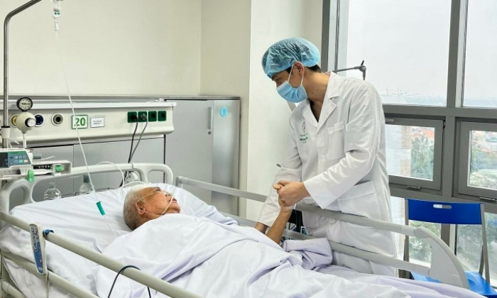 Người đàn ông 84 tuổi, quê Nam Định được đưa đến bệnh viện cấp cứu trong tình trạng ý thức suy giảm nhanh, liệt nửa người trái. Các bác sĩ chẩn đoán, người này nhồi máu não tắc đỉnh động mạch thân nền - nguồn nuôi quan trọng nhất của não bộ. Sau khi can thiệp hút huyết khối tái lập lưu thông mạch não, ông giữ được tính mạng, hiện tiếp tục điều trị tại bệnh viện.