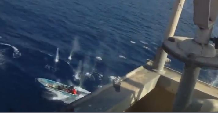 Đoạn video quay cảnh đấu súng giữa nhóm đặc nhiệm bảo vệ tàu hàng cỡ lớn với các tàu nhỏ chở cướp biển Somalia.