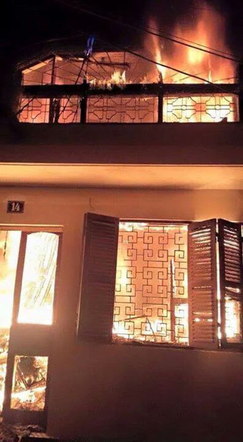 | Căn nhà bùng cháy dữ dội khiến 6 nạn nhân trong một gia đình tử vong - Ảnh do người dân cung cấp |