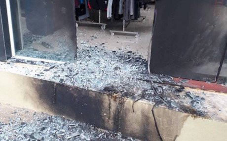 Tại hiện trường, một phần của chiếc can nhựa 5 lít sặc mùi xăng đang cháy dở; tấm cửa kính cường lực phía ngoài do bị lửa đốt nóng đã vỡ vụn; khói và lửa cũng làm cháy một số đồ đạc, quần áo trong nhà.
