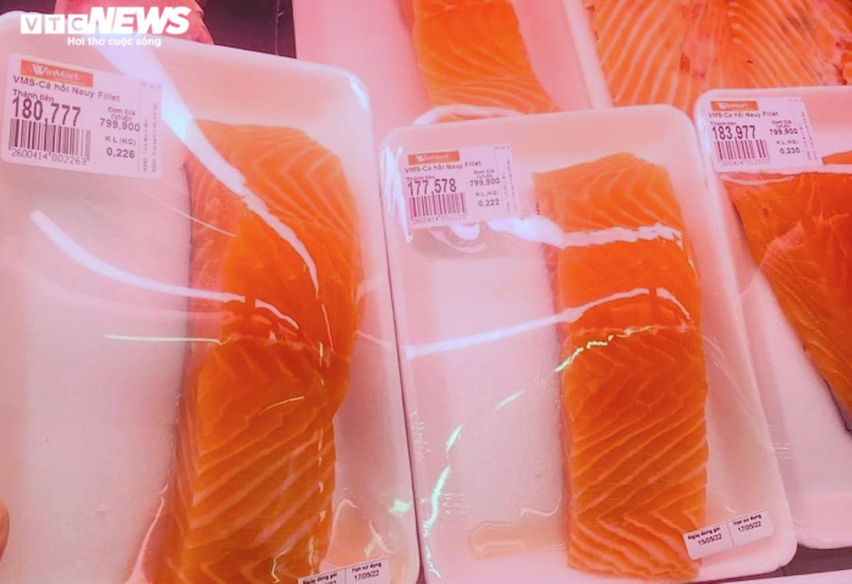 “Tôi vào siêu thị gần nhà để mua cá hồi về nấu cháo cho con, cầm lát cá hồi nặng 0,22g lên mà thấy số tiền phải thanh toán lên tới 177.000 đồng. Tưởng siêu thị tính nhầm, xem bảng giá mới thấy đề là 799.900 đồng/kg, quá choáng”, chị nói.