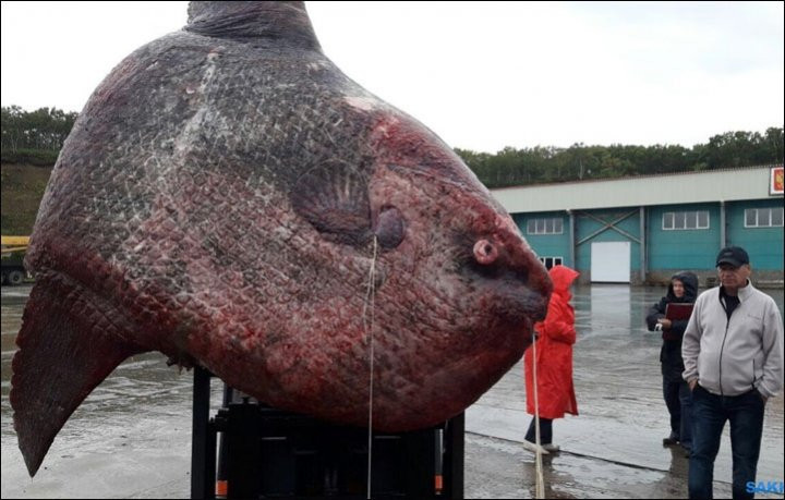 Theo Sakhalin Info, con cá nặng 1.100 kg đã vướng vào lưới của các ngư dân tại vùng biển gần đảo Iturup. Thuộc loại cá mặt trăng hay cá mola quý hiếm, sinh vật kì lạ này chính là loài cá có xương nặng nhất trên Trái đất.