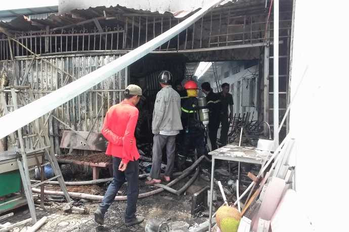 Do kho hàng chứa nhiều đồ phục vụ tiệc cưới nên có nhiều bếp và bình ga mini, khi bình ga bị bén lửa đã phát nổ nhiều tiếng lớn khiến nhiều người bung cửa gom đồ đạc bỏ chạy ra đường nên không có ai bị thương. Sau đó, hàng trăm người dân địa phương đã dùng nước tham gia chữa cháy, đồng thời điện báo công an.