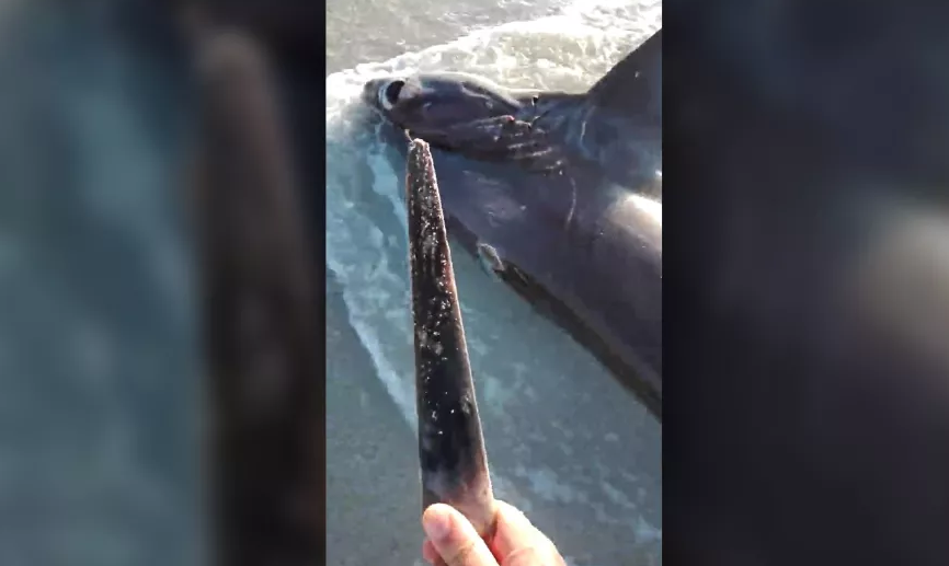 Nhưng lần mới đây, phần mũi kiếm cho thấy nó thuộc về một con cá mập trưởng thành. Các nhà khoa học đặt giả thiết có thể hai kẻ săn mồi đại dương đang tranh giành con mồi và con cá kiếm tấn công đối thủ bằng vũ khí của mình.