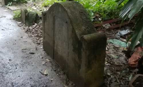 | Ngôi mộ bê tông chôn chặt hai mẹ con ở sau bức tường này |