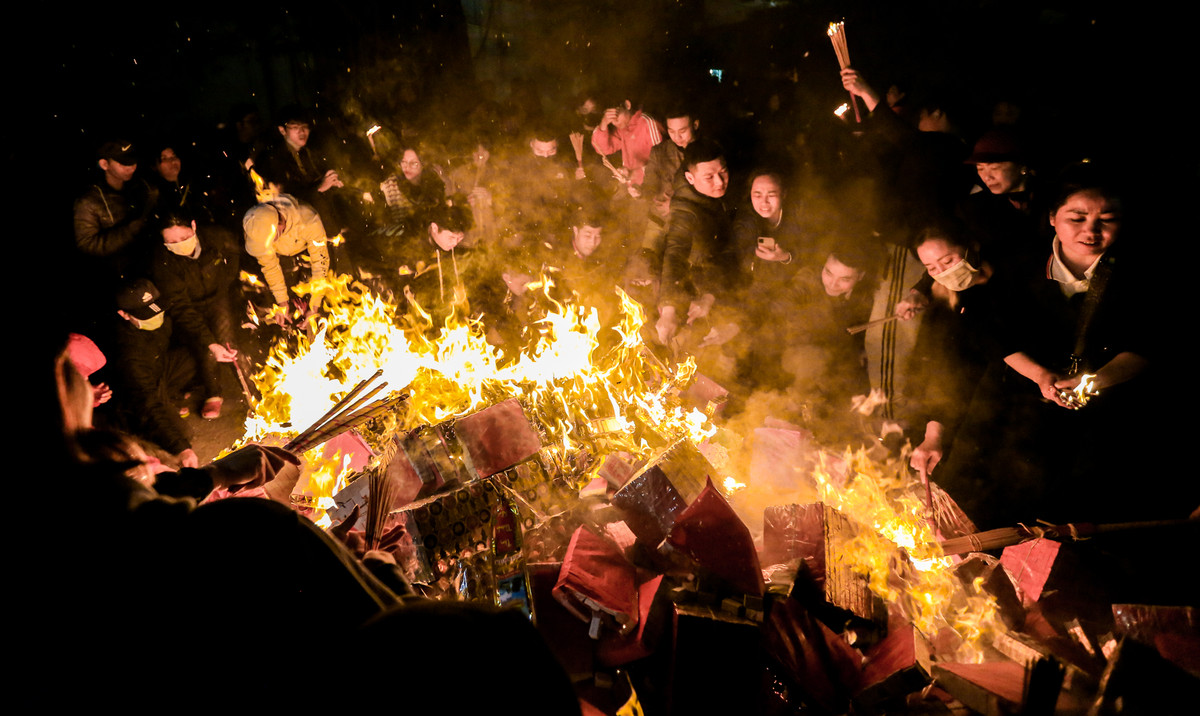 Ngọn lửa bùng cháy lớn, nhiều người dân cố gắng lấy bằng được ngọn lửa để rước về nhà.