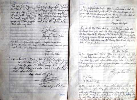 | Lá đơn được cả làng đồng ký xác nhận đề nghị cơ quan điều tra xem xét giảm nhẹ hình phạt cho hung thủ. |