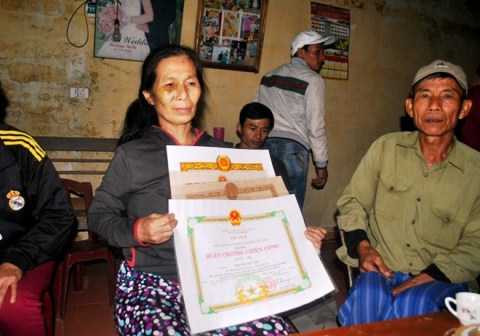 | Cầm trên tay những bằng khen của chồng được tặng thưởng, người vợ đau đớn trước việc ông Tân rơi vào vòng lao lý. |
