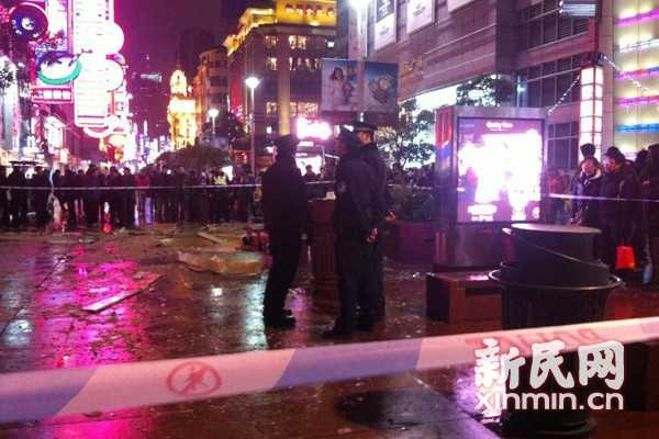 | Hiện trường vụ sập bể cá mập ở phố đi bộ Nam Kinh, Thượng Hải, Trung Quốc hôm 18/12 |