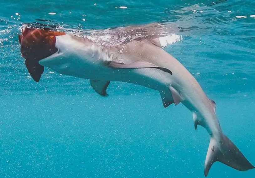 Theo Ferreira, con cá mập bơi tới sau khi đánh hơi thấy mùi máu của lũ cá mắc dây câu.