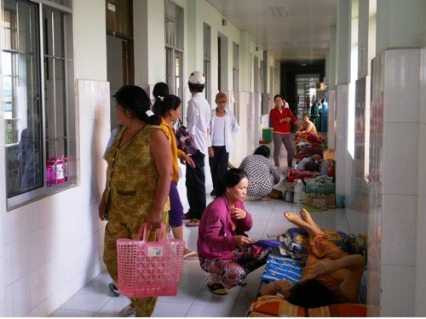 | Bà Hai và anh Thạch Hưởng ở Bệnh viện Đa khoa Cà Mau |