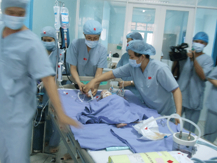 Ekip toàn ca mổ gồm 38 người, bao gồm các bác sĩ ở bệnh viện Nhi Đồng 2 và các bác sĩ ở viện Tim.