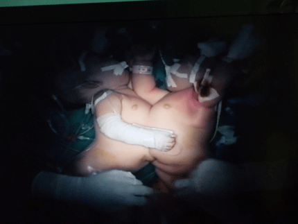Các bác sĩ cho biết, do hai bé song sinh dính nhau phần ngực nên phần tim và gan hơi phức tạp. May mắn là các động mạch chủ gần tim của hai bé tách rời nhau.