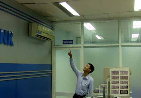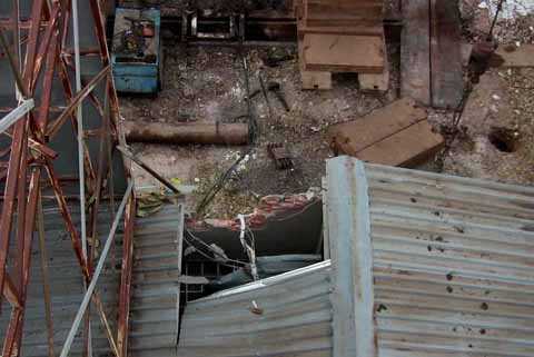 | Vị trí nơi giàn ép đỗ đè lên trần của ngân hàng. |
