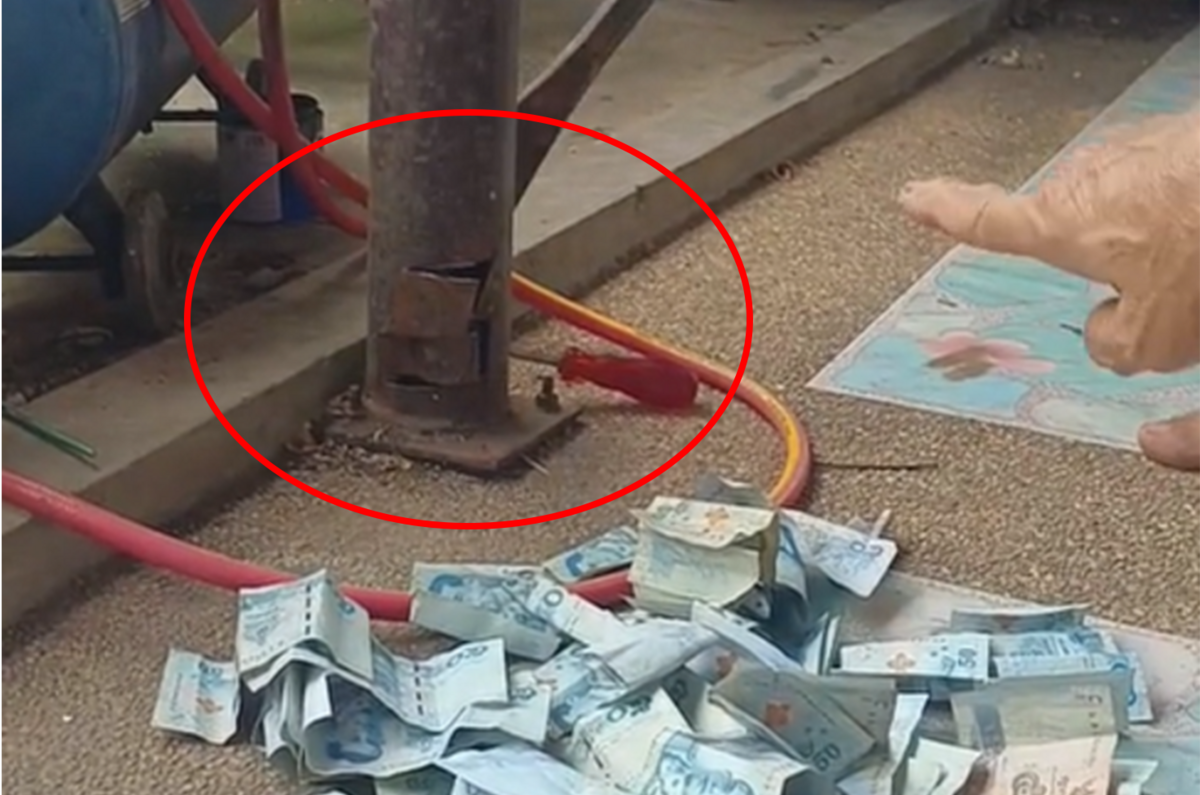 Từ chiếc cột, người nhà đã lấy ra được nhiều tờ tiền baht Thái với đủ mệnh giá từ 50, 100 đến 500, tổng cộng trị giá gần 100.000 baht (khoảng 62 triệu VND).