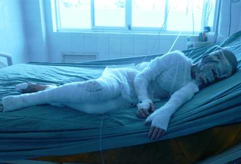 | Cháu Quỳnh Trang (10 tuổi) là người bị bỏng nặng nhất trong gia đình. |
