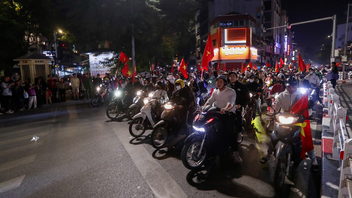 Sau khi tuyển Việt Nam giành chiến thắng trước Thái Lan, vô địch ASEAN Cup 2024, người dân khắp nơi trên cả nước đổ ra đường "đi bão" ăn mừng.