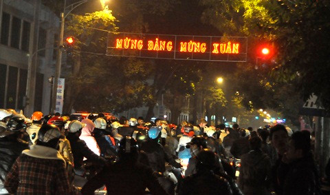 | Các tuyến đường chật kín người ra đường chào đón năm mới 2014 |