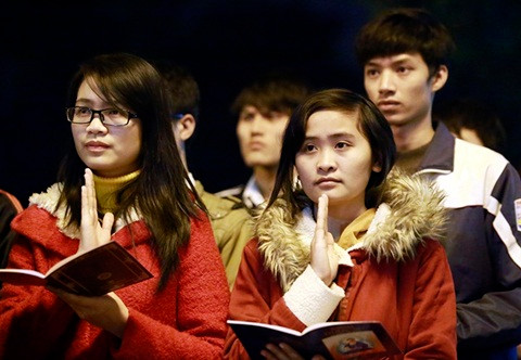 Nhiều bạn trẻ đến chùa làm lễ và đón năm mới 2014
