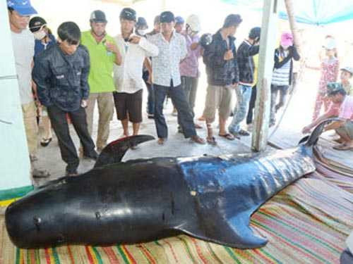 | Xác cá ông được đưa vào Van Thanh Phong. |