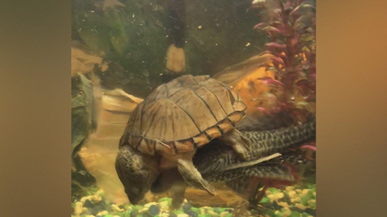 Video: Rùa cưỡi trên lưng cá, nhất quyết không chịu buông