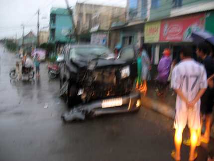 Rất may lúc đó không có ai qua lại nên không có tổn thương về người. Tài xế cũng thoát chết nhờ phần túi hơi cứu nạn trên xe bung ra.