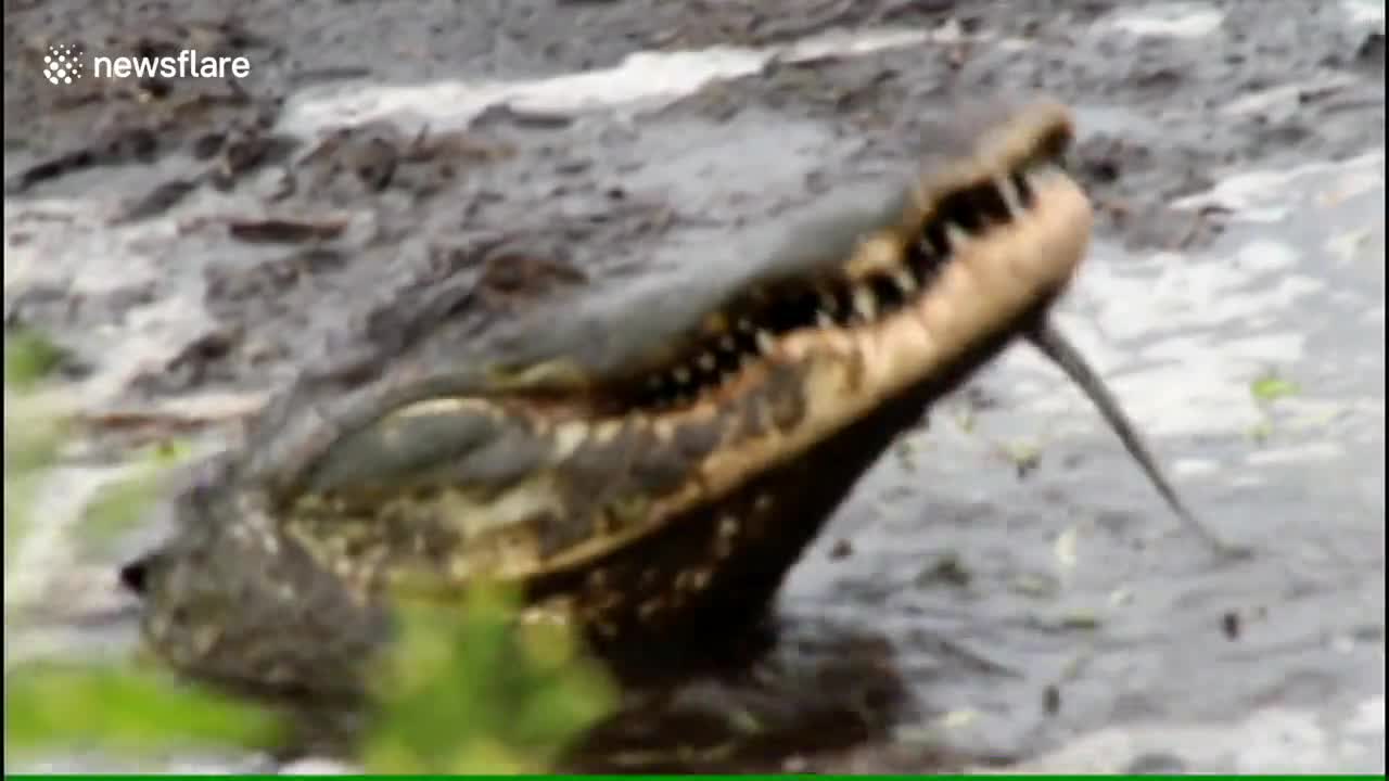 Clip ghi lại cảnh con cá sấu to lớn hung hãn đuổi theo và ăn thịt đồng loại nhỏ hơn khiến người xem sốc nặng, sự việc xảy ra hôm 2/6 tại một khu bảo tồn thiên nhiên ở bang Florida, Mỹ.