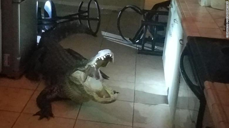 Theo Sở Cảnh sát Clearwater, con cá sấu đã phá vỡ cửa sổ nhà bếp và đột nhập vào trong nhà từ đây.
