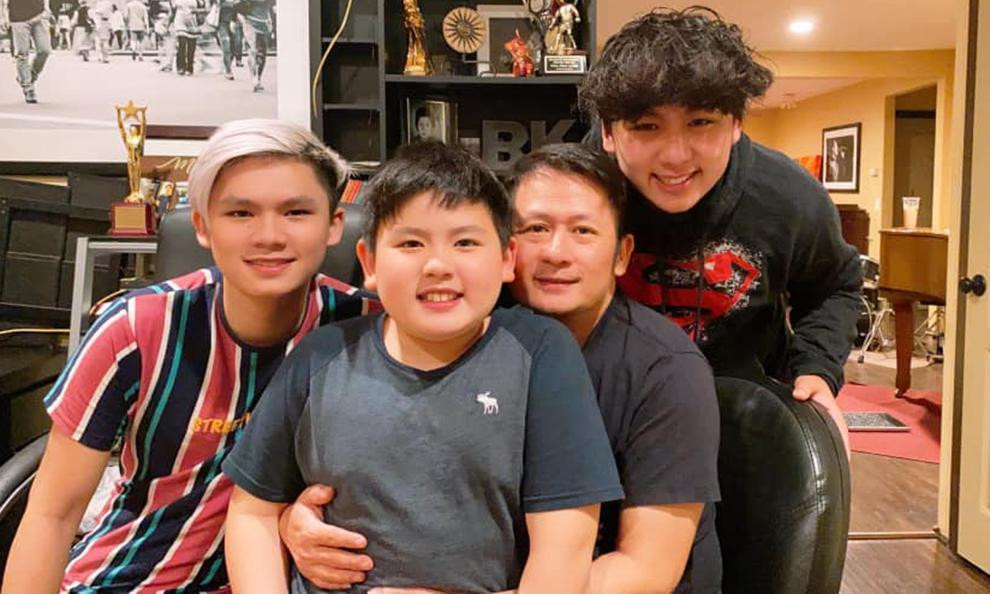 Bằng Kiều cùng ba con trai.