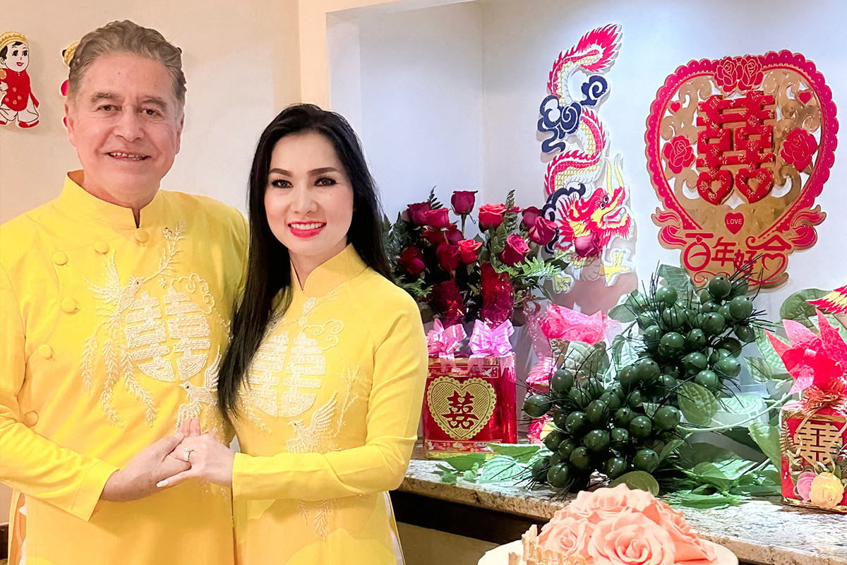 Ca sĩ Kavie Trần vừa tổ chức lễ đính hôn với bạn trai Patricio Northland tại Mỹ. Lễ đính hôn được diễn ra không gian ấm cúng và theo nghi thức truyền thống Việt Nam với đầy đủ lễ vật như trầu cau, cặp rồng phượng, rượu, bánh… Cô dâu, chú rể diện áo dài, dành cho nhau những lời ngọt ngào.