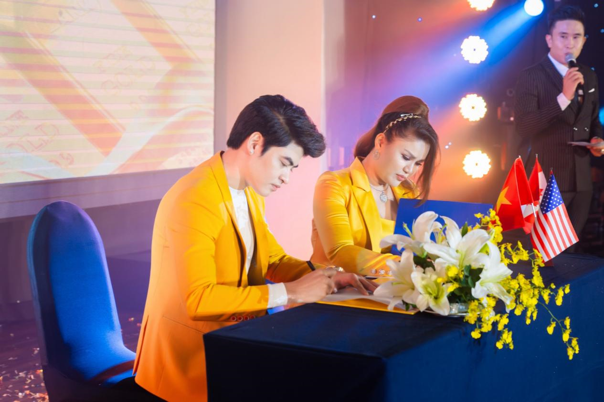 Doanh nhân Hoa Trần, Giám đốc đối ngoại của Novagold Corp Việt Nam trao quyết định Giám đốc phát triển thị trường cho ca sĩ Lưu Hưng.