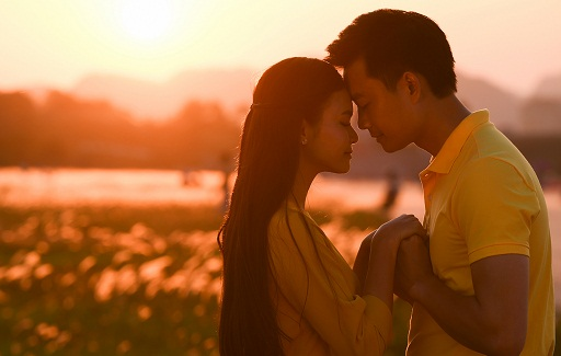Cảnh tình cảm của Tiến Lộc và Phạm Phương Thảo trong phim ca nhạc "Mong manh em".