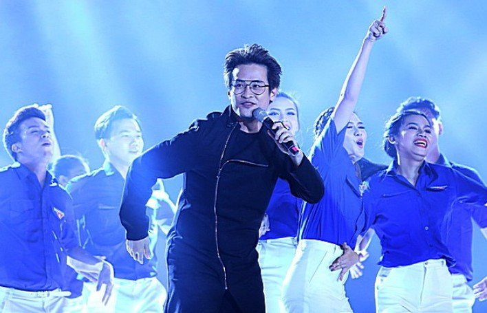 Ca sỹ Hà Anh Tuấn "quẩy" hết mình cùng thanh niên, đoàn viên.
