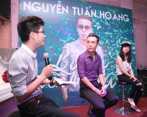| Ca sỹ Nguyễn Tuấn Hoàng trả lời những câu hỏi của báo chí trong buổi ra mắt single Bước bên mưa. |