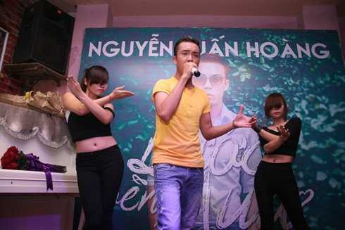 | Ca sỹ Nguyễn Tuấn Hoàng hát Bước bên mưa. |