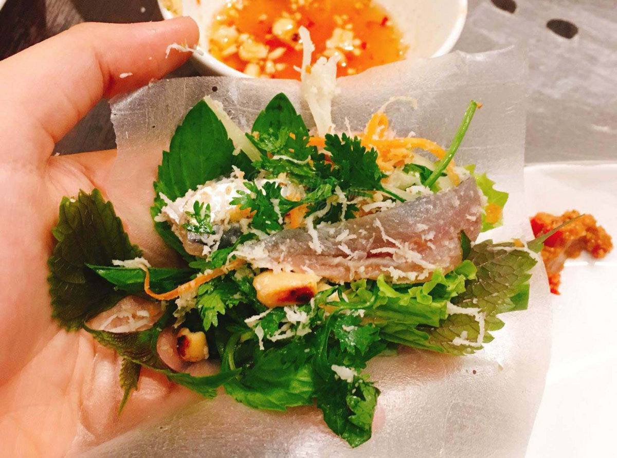 Vị tươi ngon của thịt cá trích béo ngậy với phần dừa nạo, mùi rau thơm hòa quyện cùng nước chấm cay nồng đậm đà sẽ làm hài lòng các thành viên trong gia đình.
