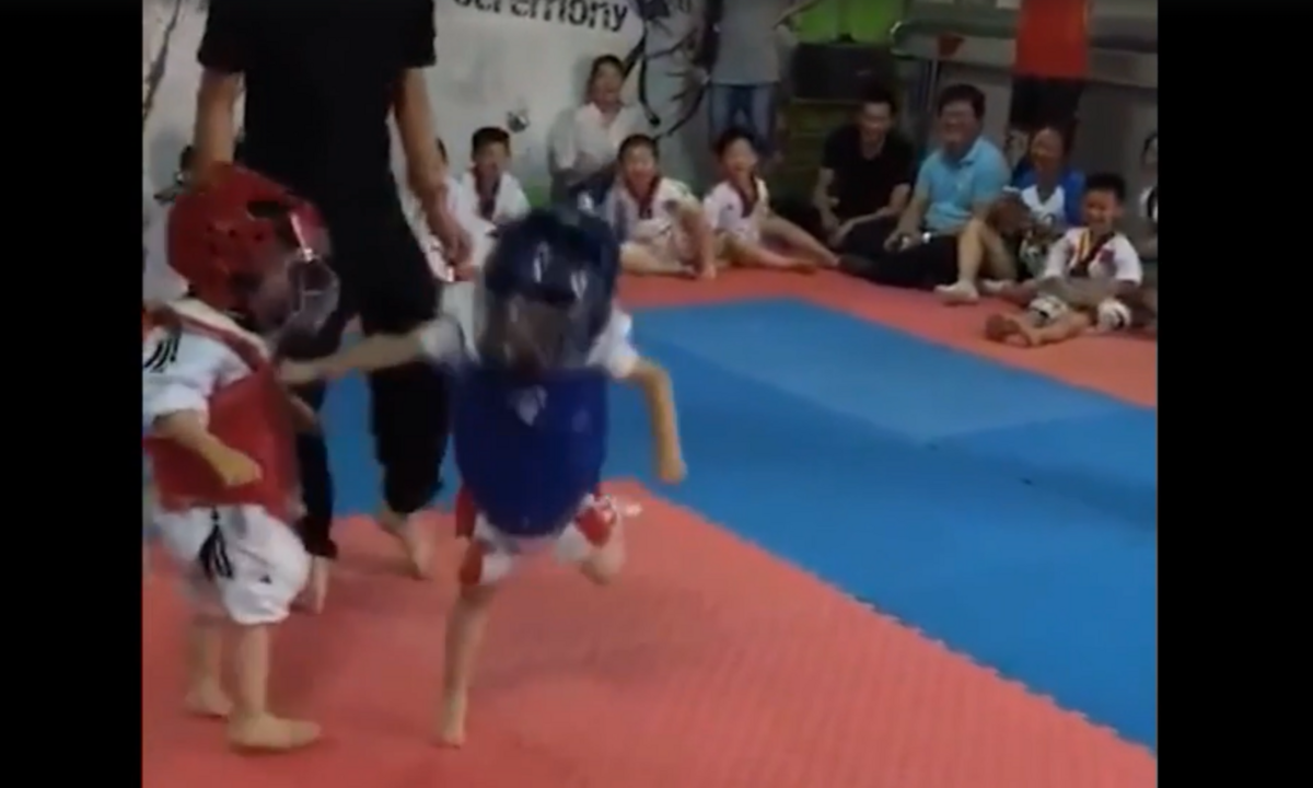 Bật cười xem võ sĩ nhí tung 'liên hoàn cước'