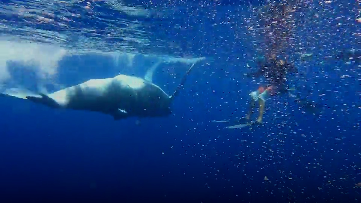 Cá voi bất ngờ xuất hiện bơi cùng thợ lặn ở Pháp