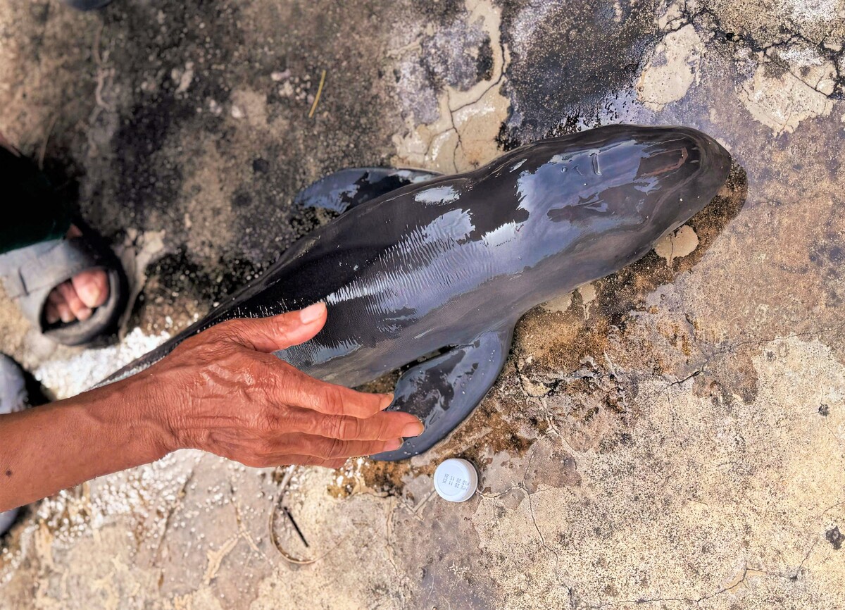 Theo người dân địa phương xác nhận cá voi con dài khoảng 0,5 m, nặng gần 7 kg, thân màu đen trôi dạt vào bờ biển thôn Xuân Thạnh Nam đã chết trước đó.