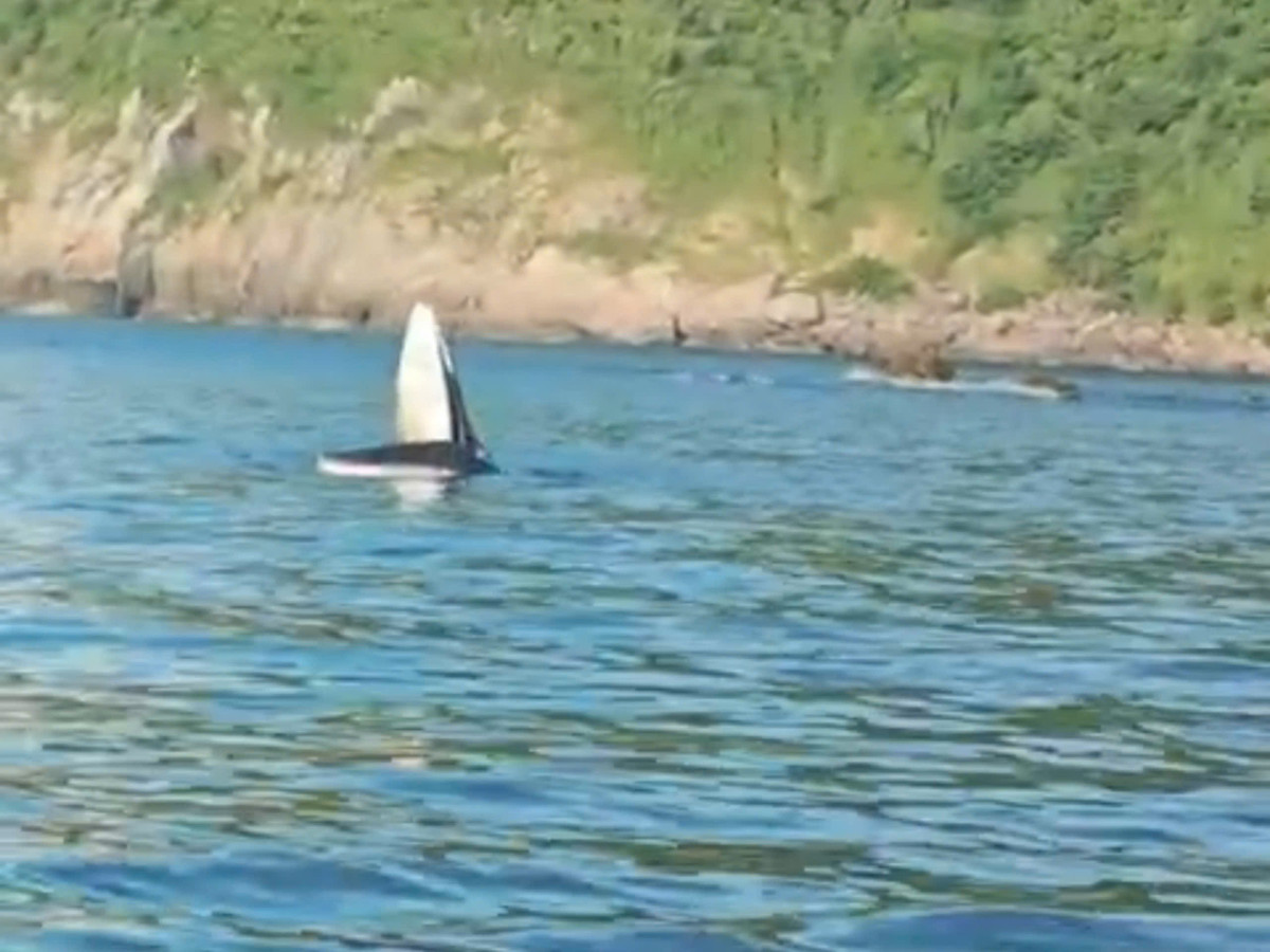 Theo đó, vào khoảng 8h cùng ngày, tàu cá của ông Huỳnh Kim Tường (50 tuổi, trú phường Hoà Hiệp Trung thị xã Đông Hòa) đang hoạt động tại khu vực vùng biển danh thắng Mũi Điện thì một thuyền viên phát hiện một con cá voi đang bơi gần tàu cá nên dùng điện thoại ghi hình lại.