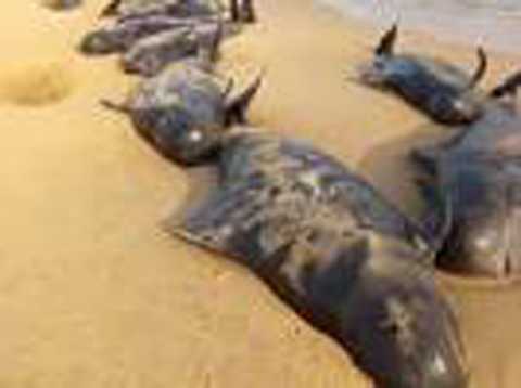 Ngày 12/1, hơn 100 con cá voi hoa tiêu bị mắc cạn tại bờ biển phía nam Ấn Độ, trong đó có tới 45 con đã chết.