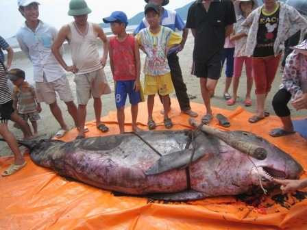 Được biết, đó là con cá voi, nặng trên 3 tạ, màu đen trũi, dài khoảng 2 mét.