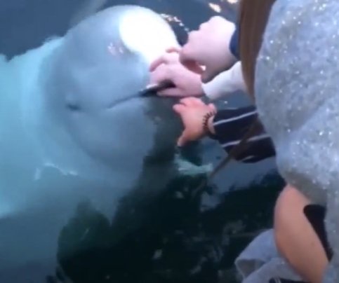 Tài khoản Instagram @isa.opdahl (Na Uy) đăng tải video một chú cá voi trắng nhặt chiếc iPhone từ biển gửi lại cho người phía trên bờ.