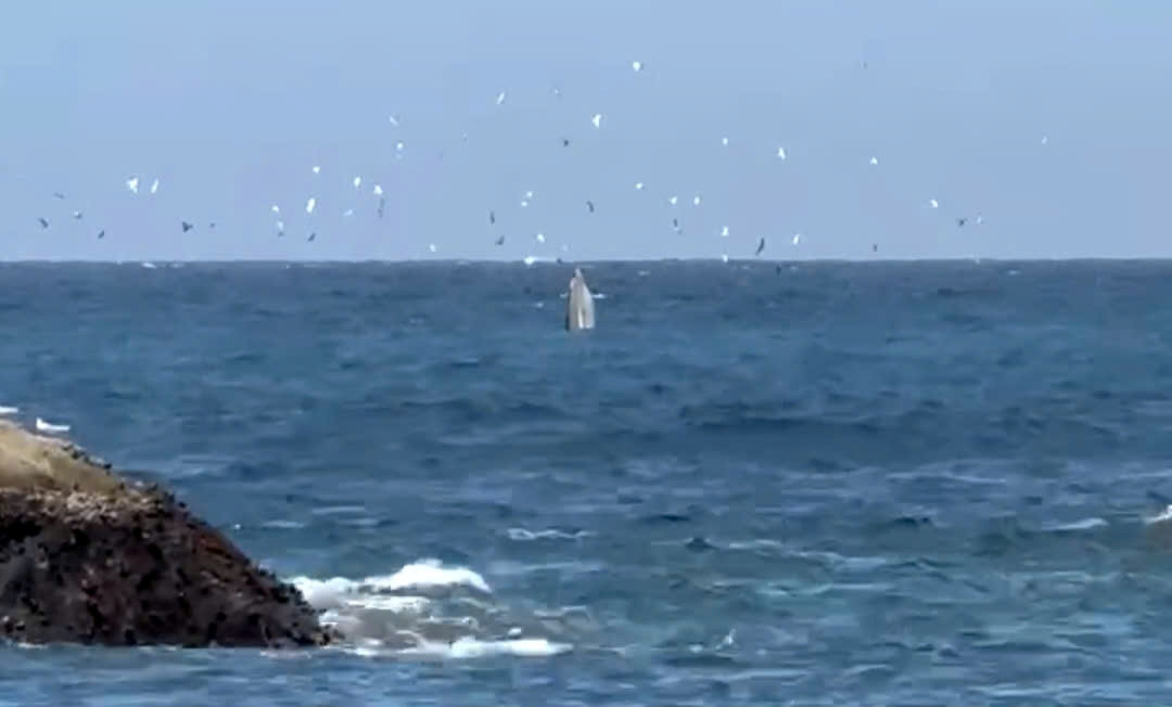 Cá voi lớn đớp mồi trên vịnh Nha Trang.