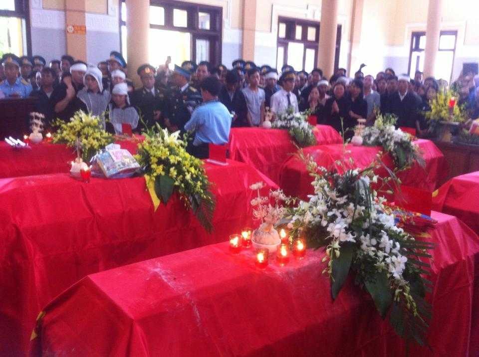 13h40, tang lễ kết thúc, thi thể các liệt sĩ được đưa vào phòng hoả táng. Dự kiến từ chiều nay tới ngày mai, về cơ bản tro cốt các liệt sĩ sẽ được gia đình đưa về địa phương.» Đẫm lệ viếng 18 chiến sĩ hy sinh vụ máy bay rơi