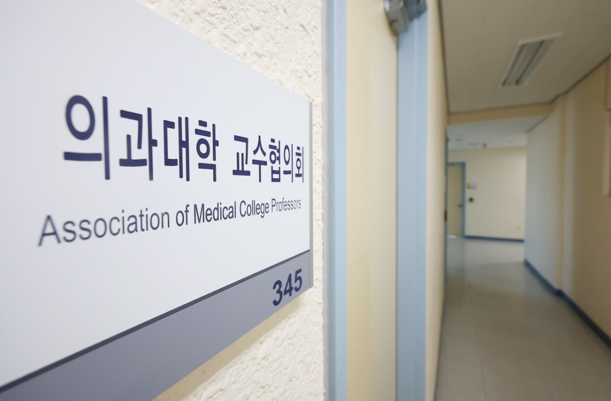 Biển hiệu của Hiệp hội Giáo sư Đại học Y tại một trường ở Seoul. (Ảnh: Yonhap)